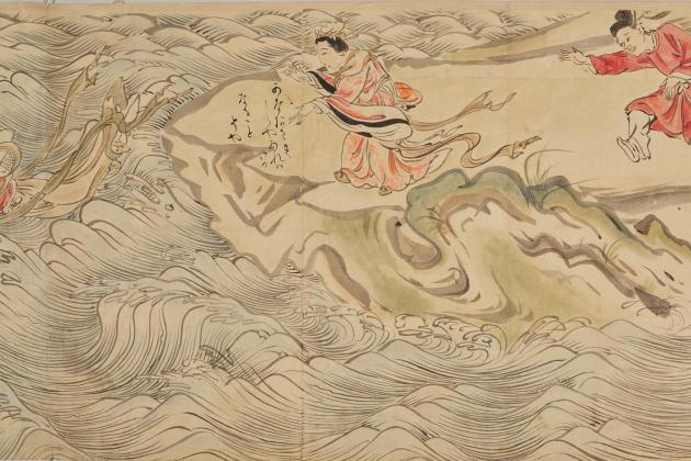 Image credit: Detail from a copy of the Illustrated Biographies of the Founding of the Kegon School (total seven handscrolls originally created in the 13th century); Kano Ansen (1823–1892) and others